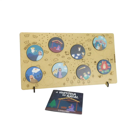 Combo: Quebra-cabeça 4 peças: 3 unidades (Sagrada Família, Manjedoura e Três Reis Magos)