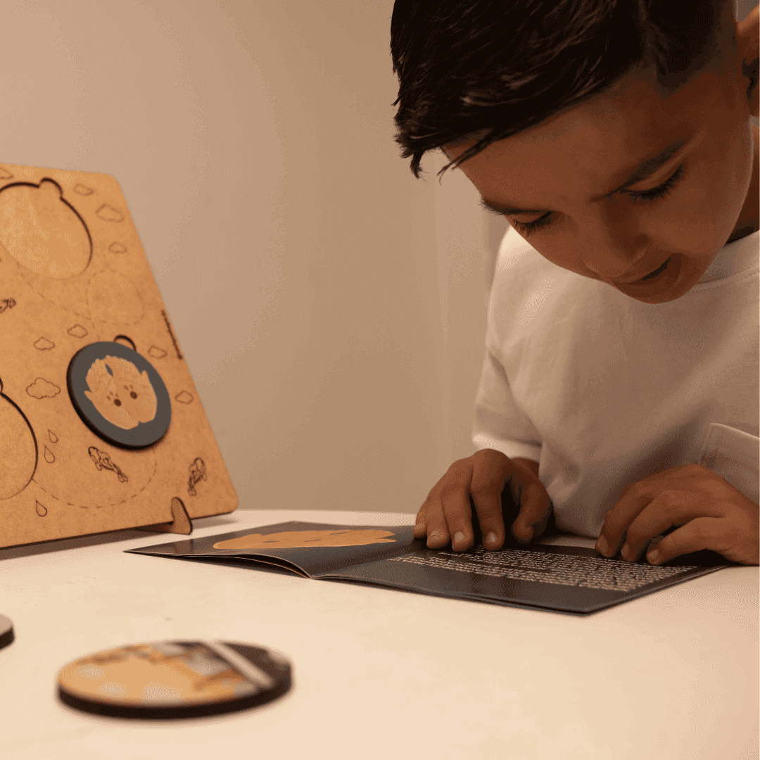 Material: MDF, tinta UV (não tóxica) e petg/ Papel couchê e offset