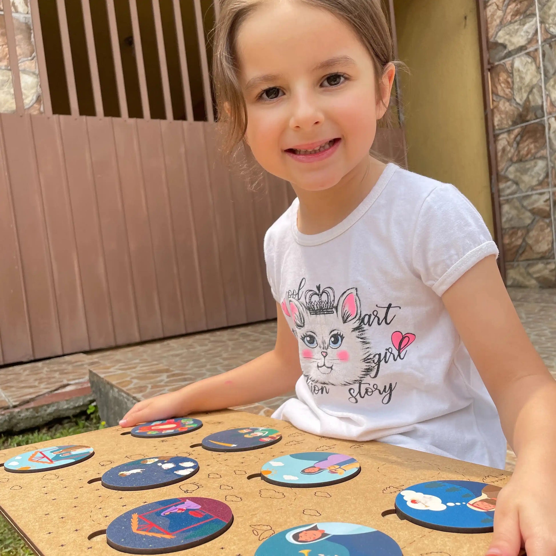 Idade Indicada: A partir dos 3 anos Acompanha: 24 peças (12 pares) Material: MDF, tinta UV (não tóxica) e petg Dimensões: 4 x 4 cm Peso: Total - 17...