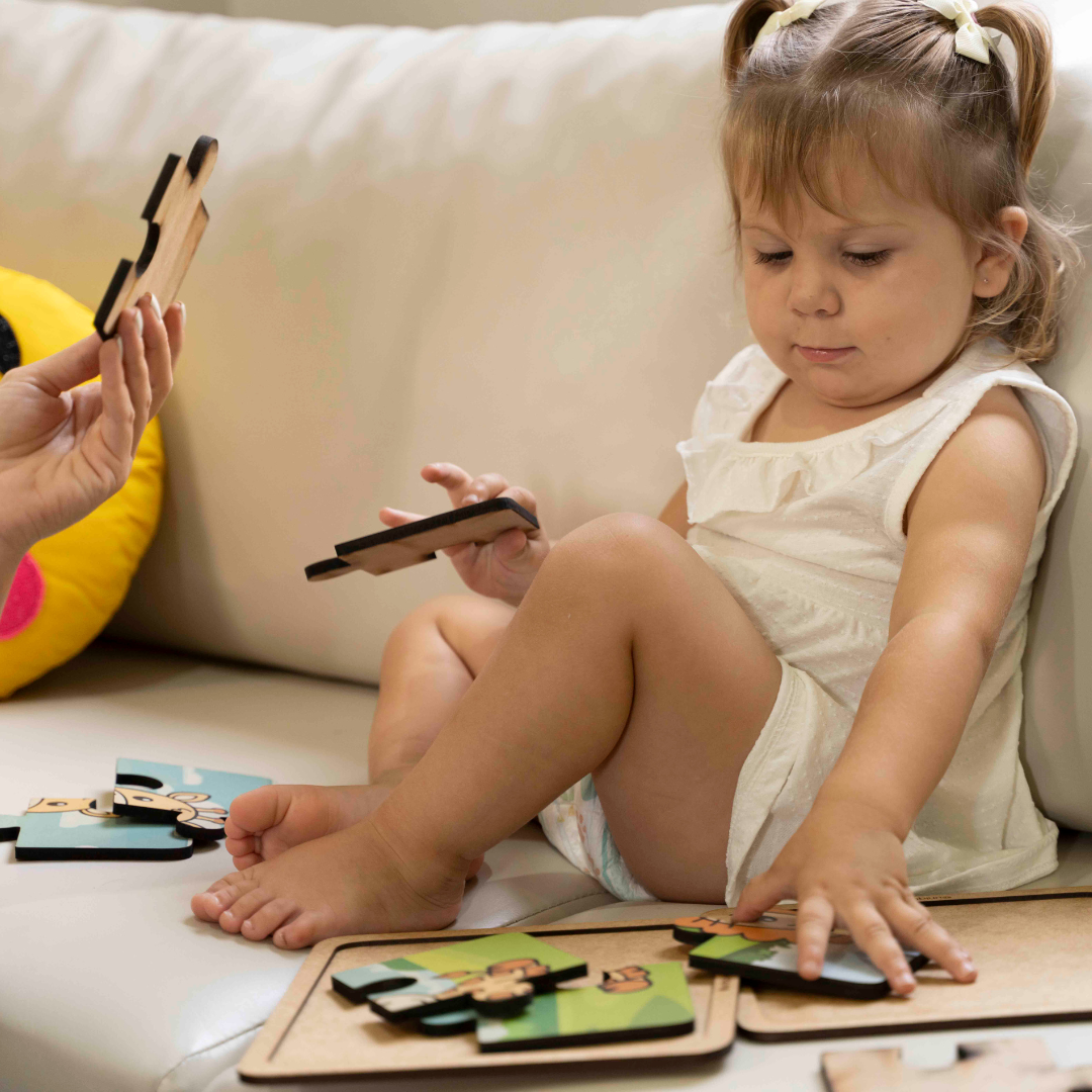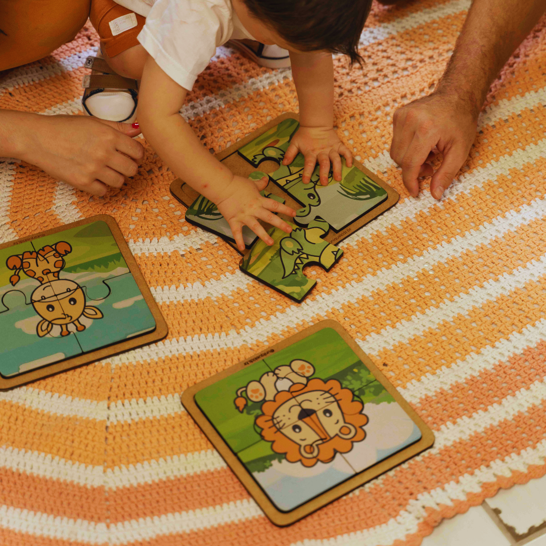 Acompanha: 3 unidades de Quebra-cabeça 4 peças (girafa, jacaré e leão)