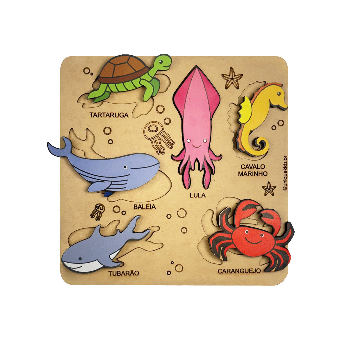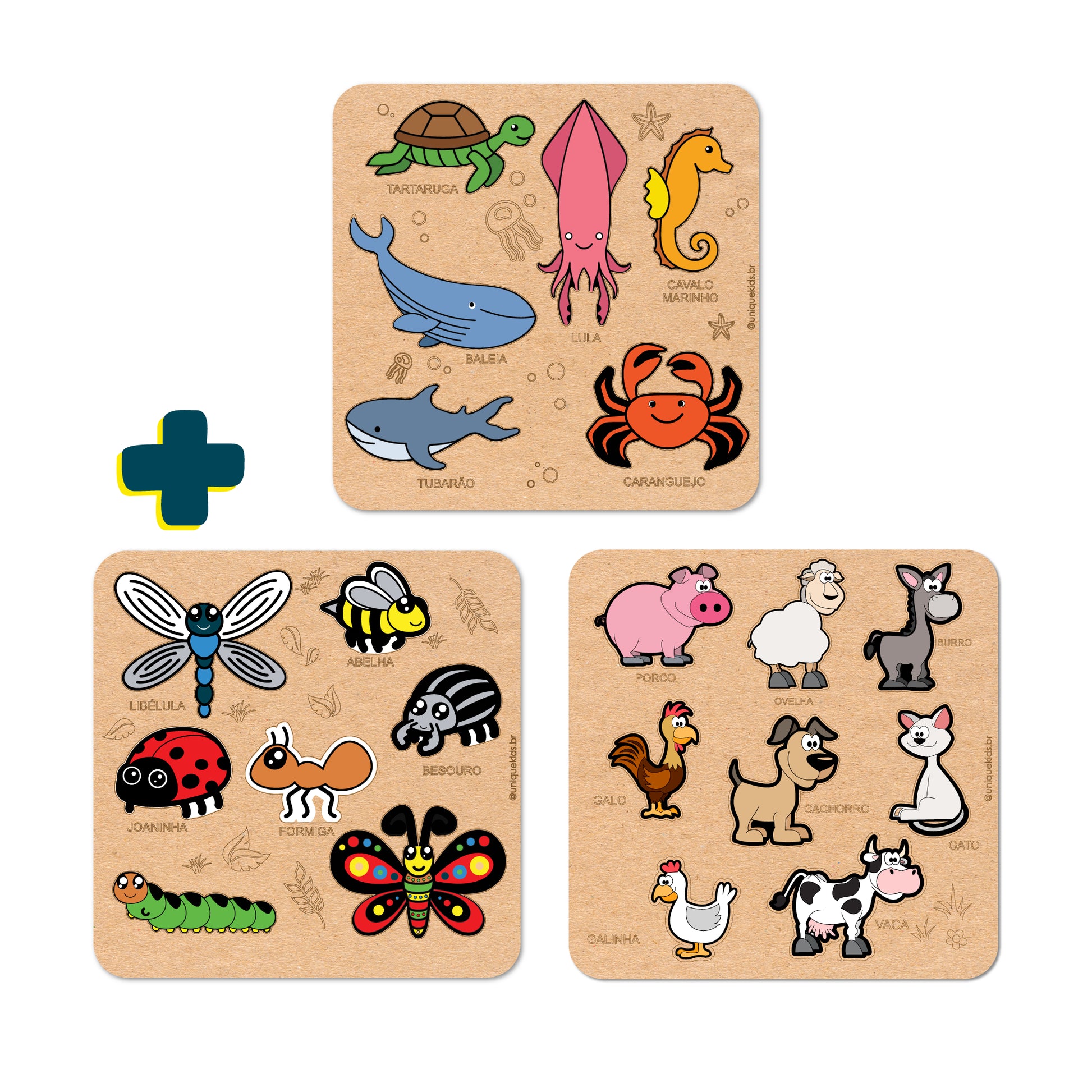 Acompanha: Jogo de encaixe animais do campo + animais marinhos + insetos