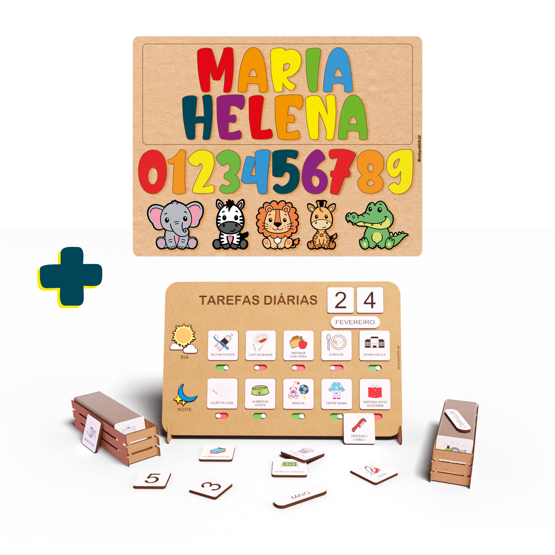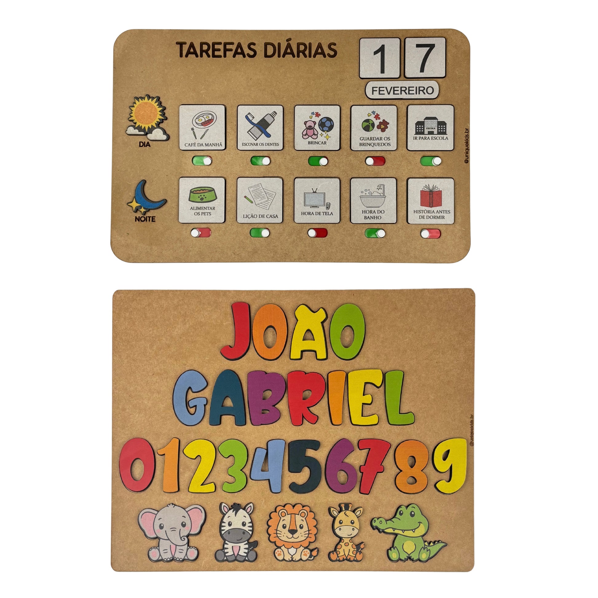 Acompanha: Quadro Tarefas Diárias com suporte e 31 cards pré-definidos + 3 cards em branco para personalizar como desejar, meses do ano e dias do mês. Quadro tem botão interativo para que a criança possa sinalizar o que já realizou.