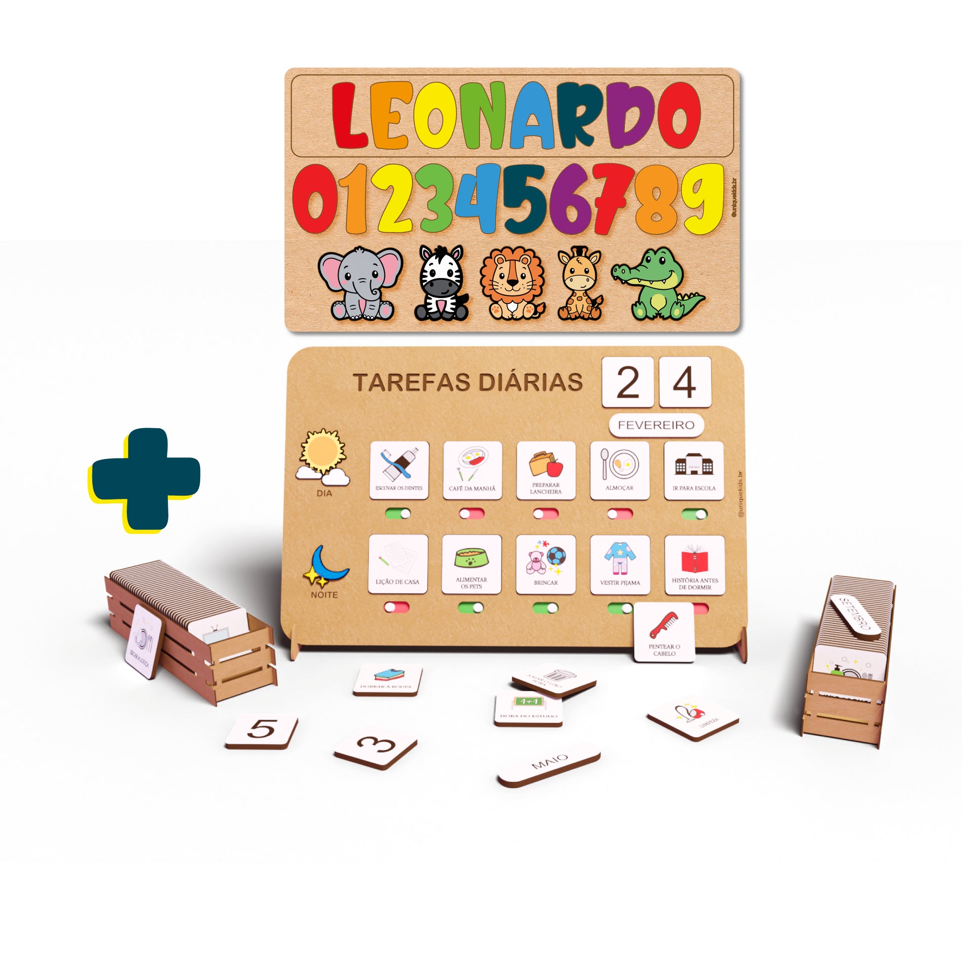 Acompanha: Quadro Tarefas Diárias com suporte e 31 cards pré-definidos + 3 cards em branco para personalizar como desejar, meses do ano e dias do mês. Quadro tem botão interativo para que a criança possa sinalizar o que já realizou.