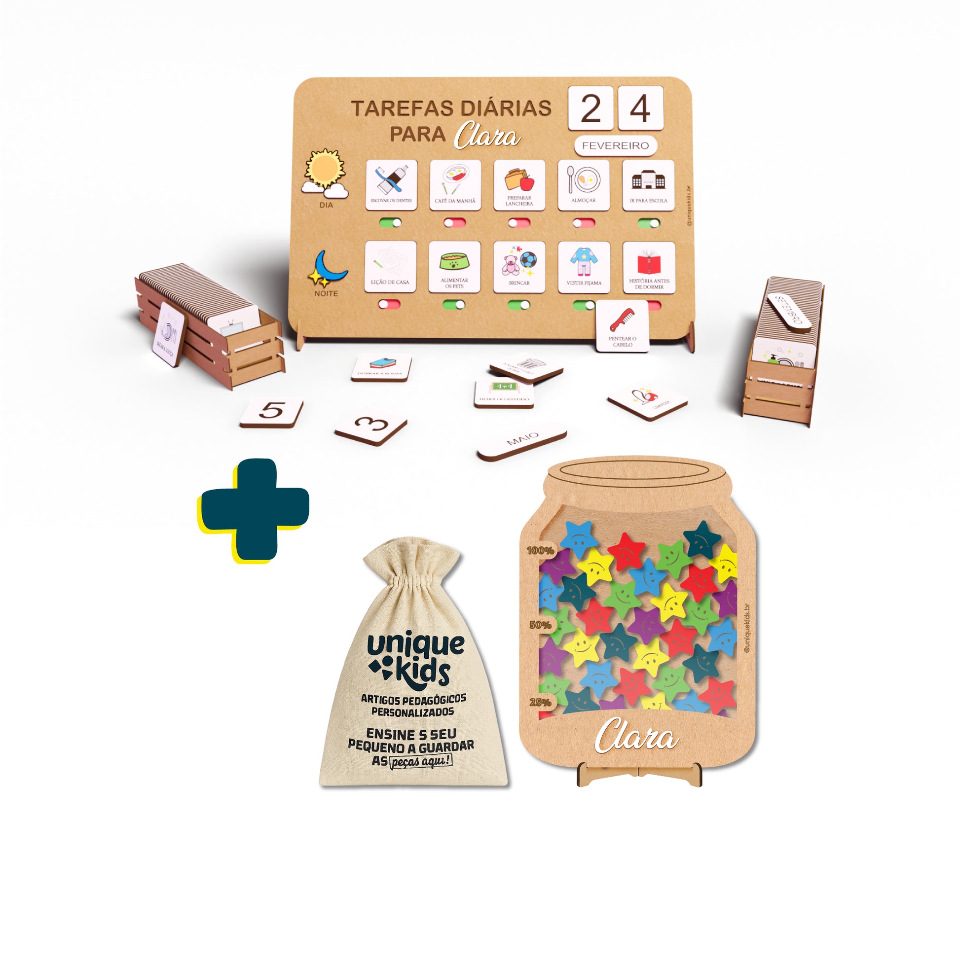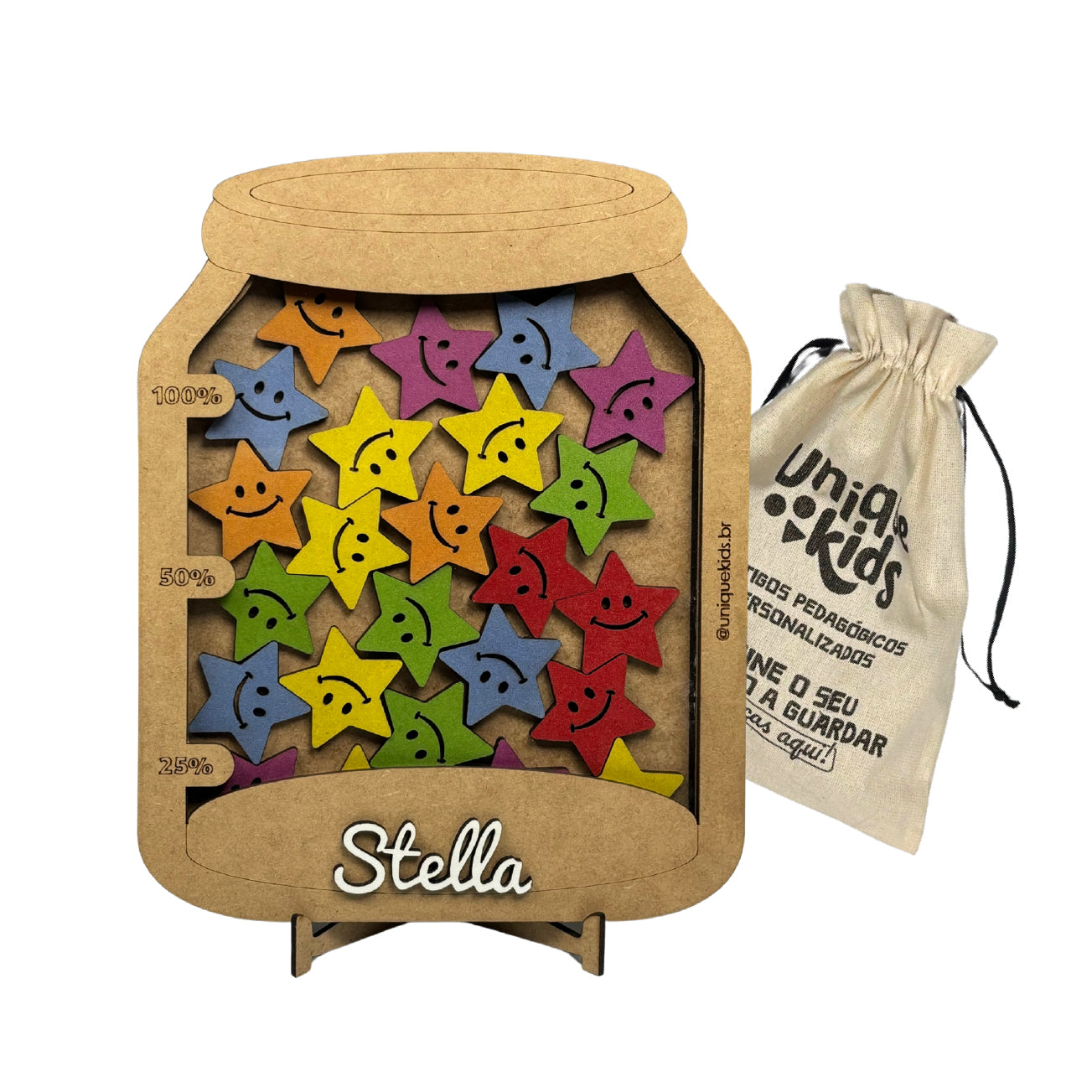 Acompanha: Pote da conquista,  suporte de apoio e 32 estrelas coloridas