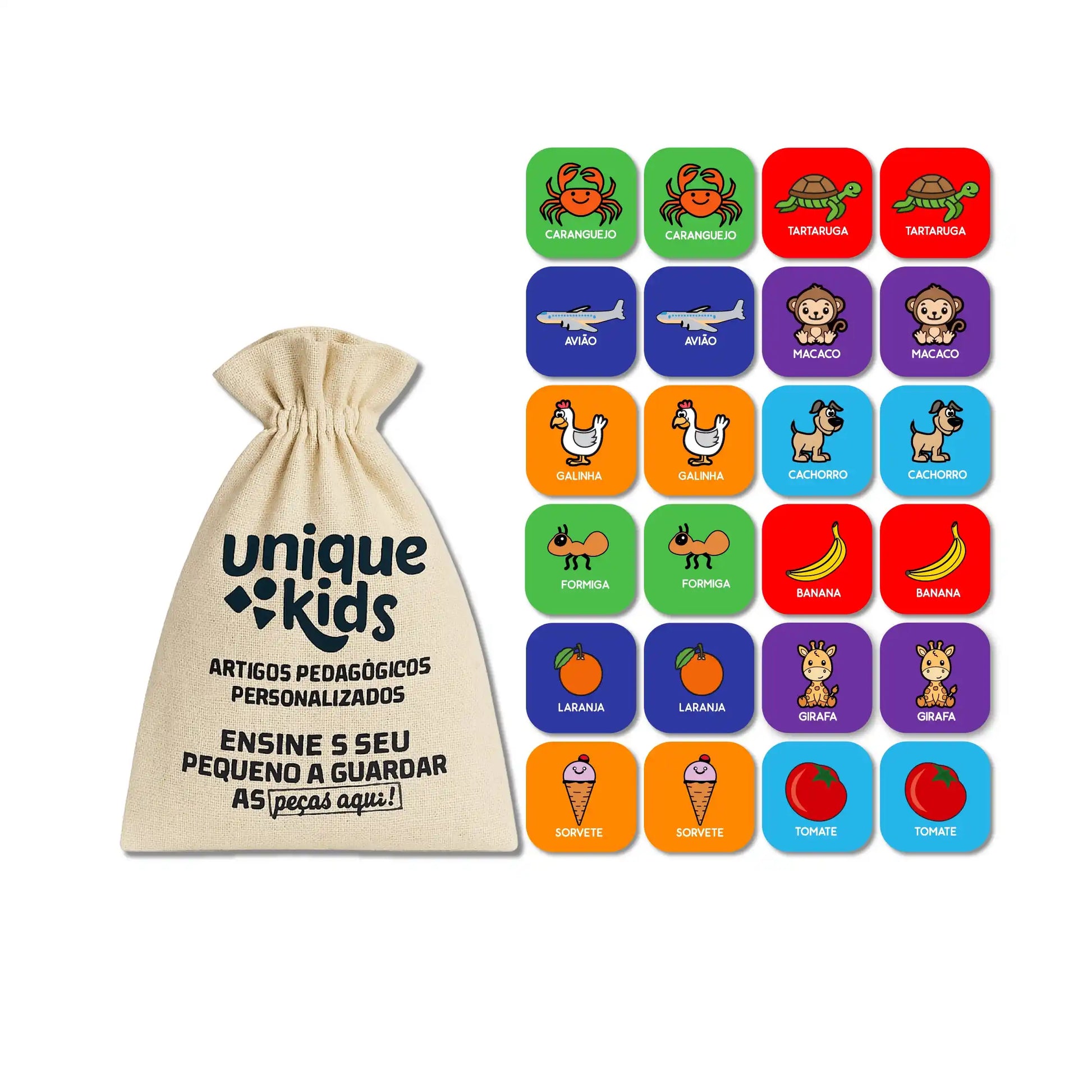 Acompanha: 26 peças, cada uma contendo uma letra do alfabeto + figura + palavra