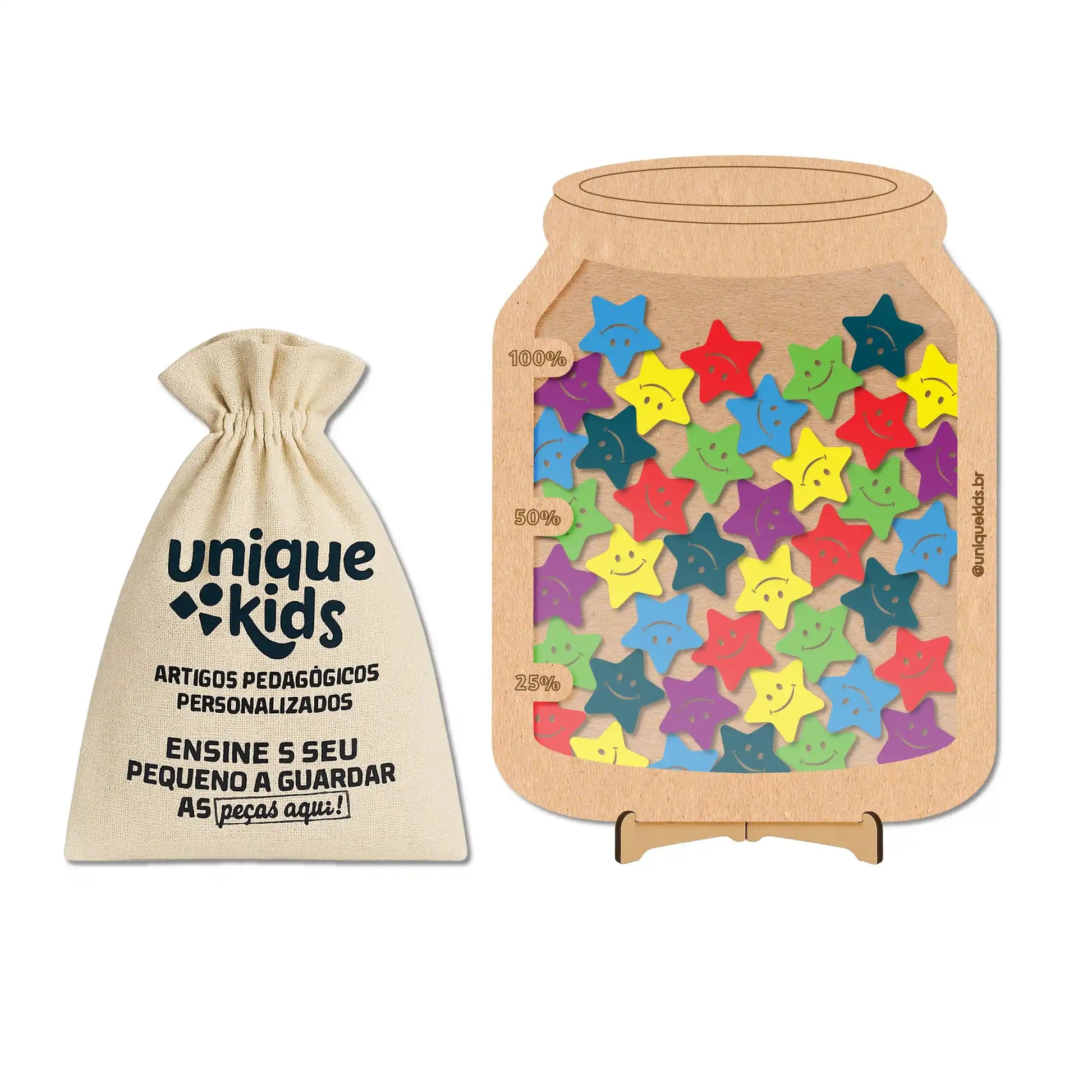 Acompanha: Pote da conquista,  suporte de apoio e 32 estrelas coloridas