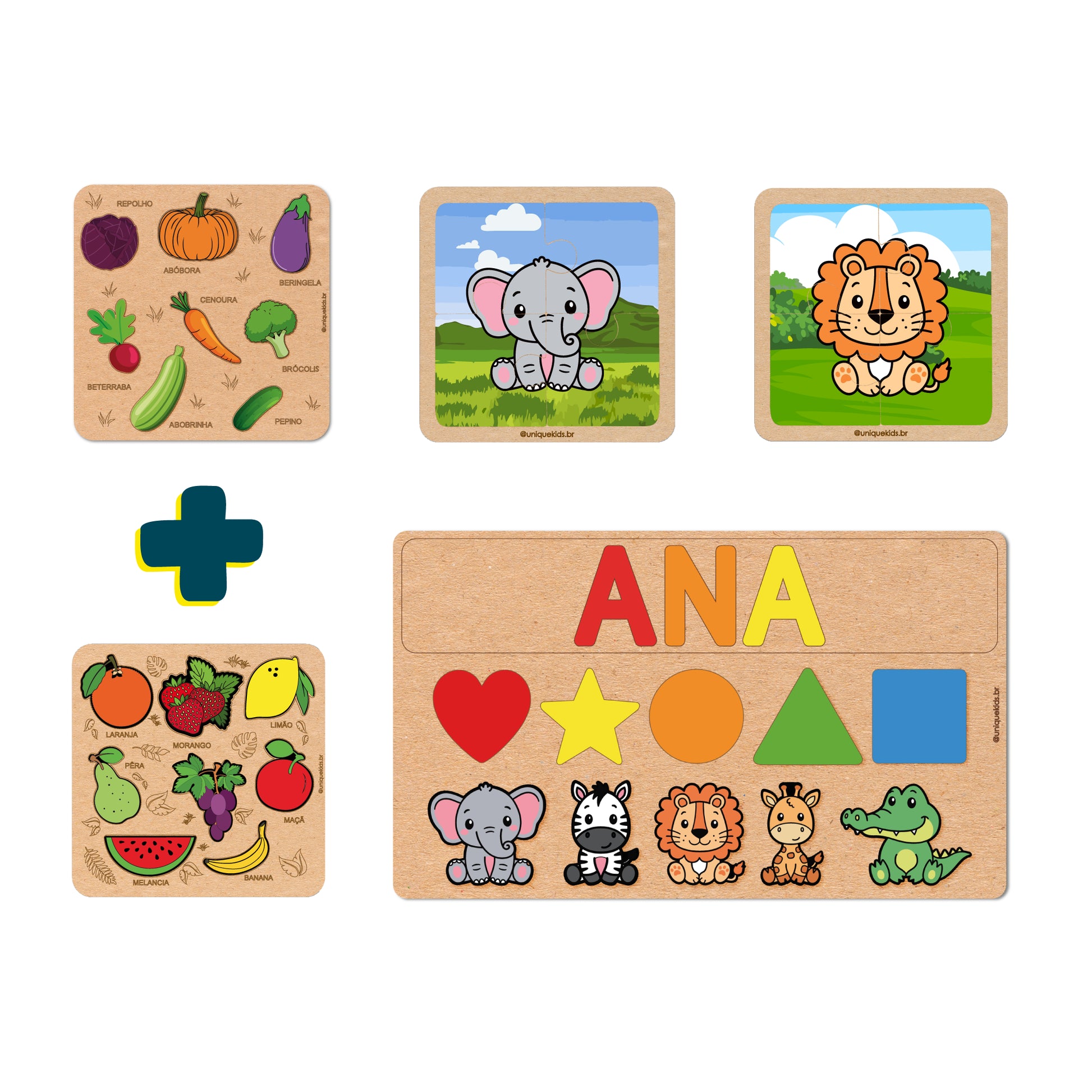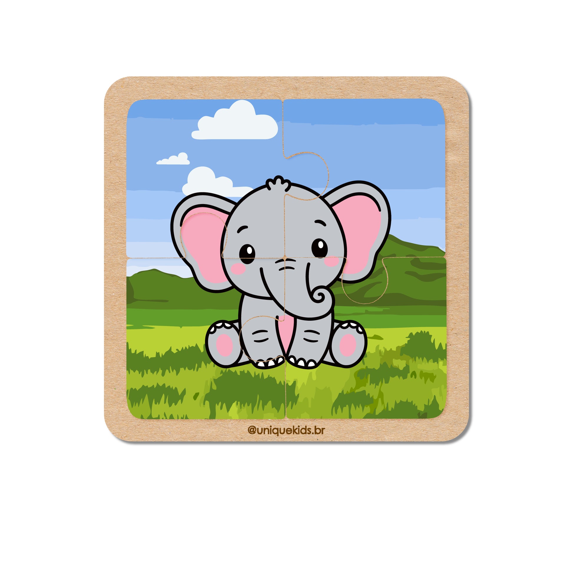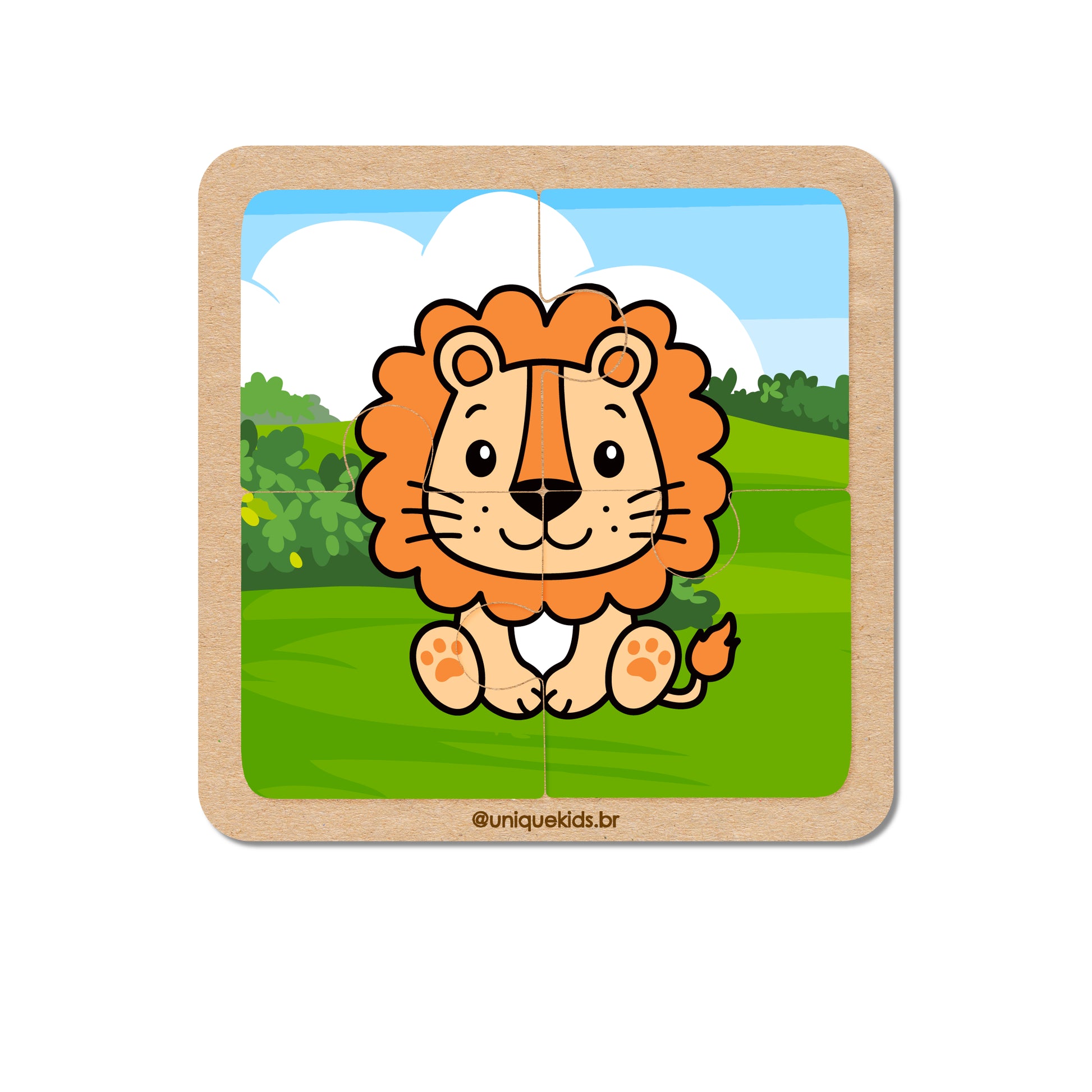 Acompanha: Quebra-cabeça 4 peças leão + elefante