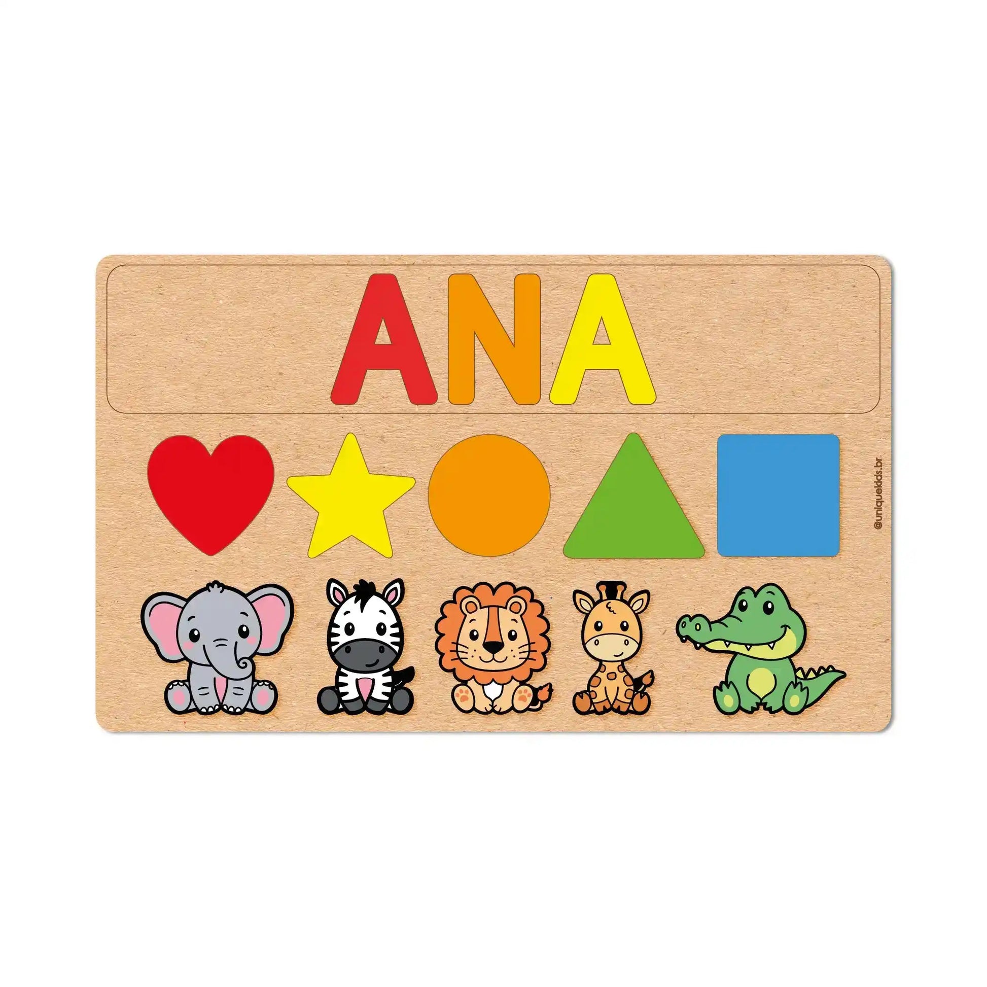 Acompanha: Base + Nome Personalizado + formas geométricas (coração, estrela,  círculo, triângulo e quadrado) + animais (elefante, zebra, leão, girafa, jacaré)  - NÃO ACOMPANHA SUPORTE