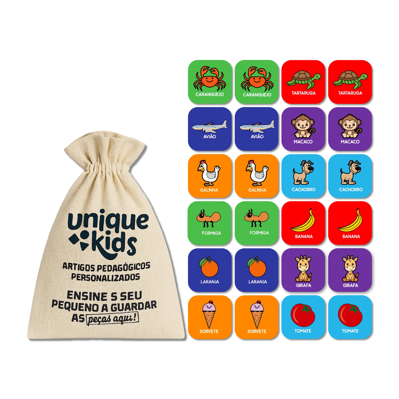 Idade Indicada: A partir dos 3 anos Acompanha: 24 peças (12 pares) Material: MDF, tinta UV (não tóxica) e petg Dimensões: 4 x 4 cm Peso: Total - 17...