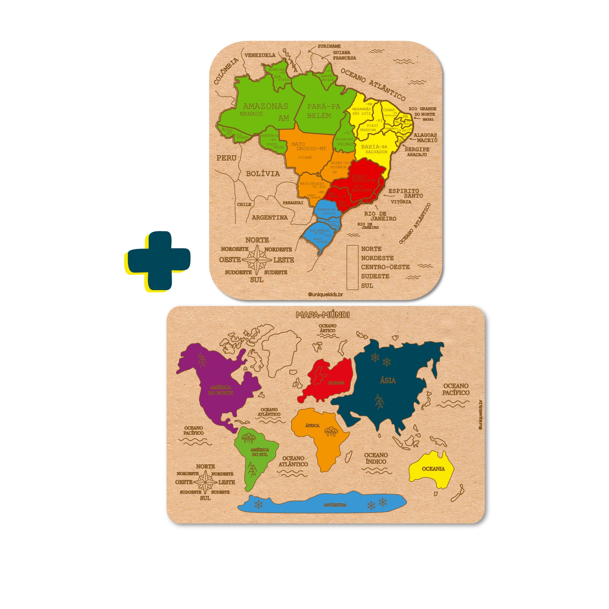Combo Mapas: Mapa Múndi + Mapa do Brasil