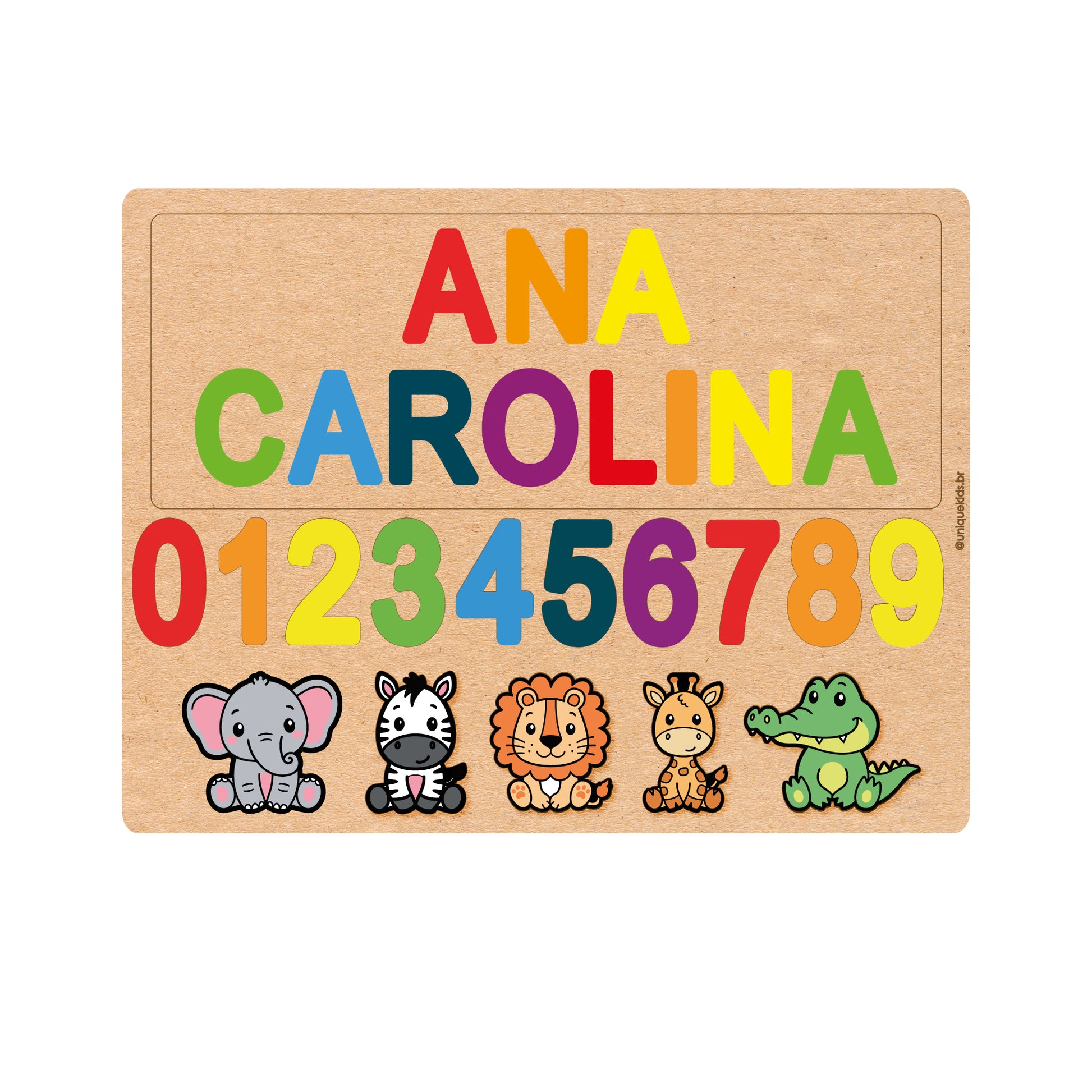 Acompanha: Base + Nome Personalizado + números do 0 ao 9 + animais (elefante, zebra, leão, girafa, jacaré)  - NÃO ACOMPANHA SUPORTE