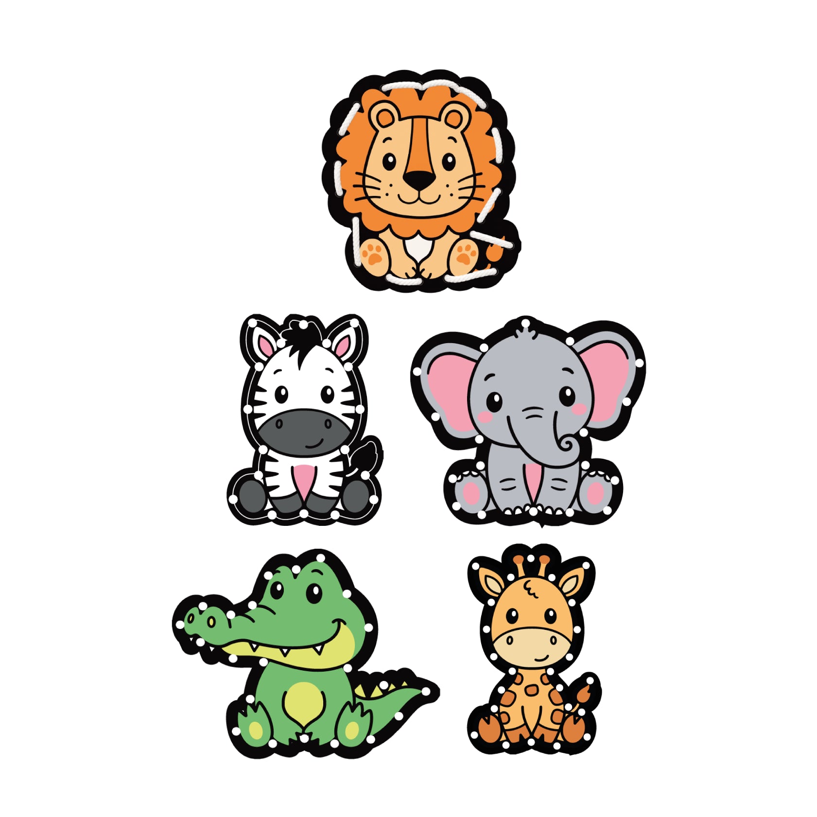 Acompanha: 5 animais para alinhavar + 5 cadarços