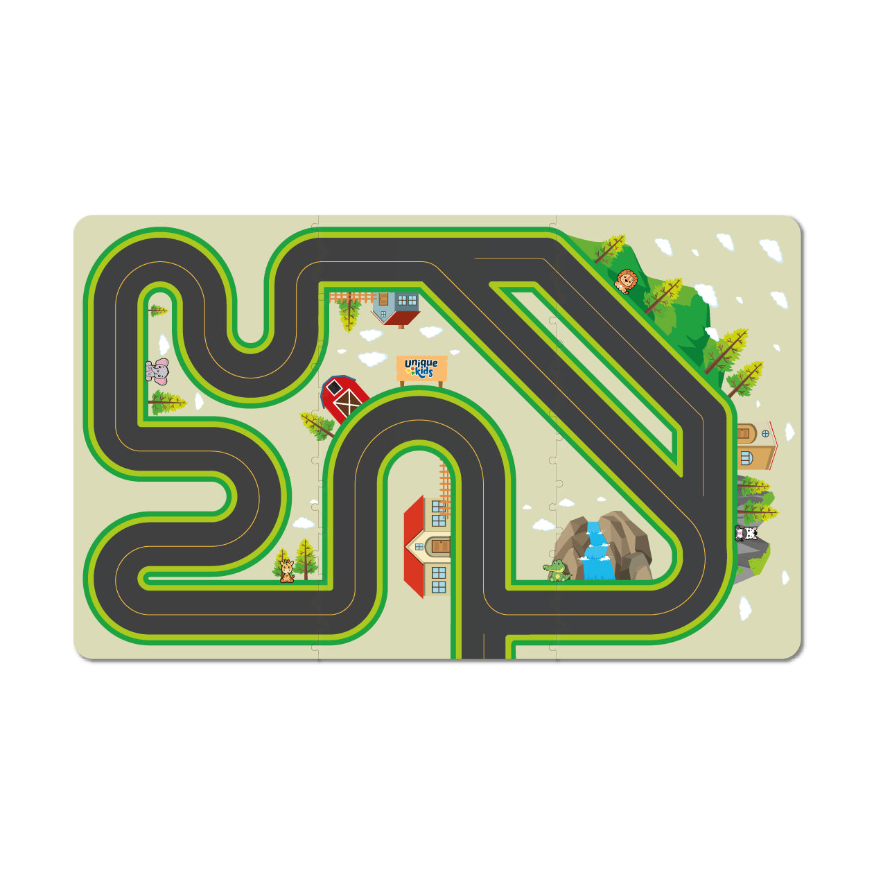 Acompanha: 3 painéis que juntos formam o quadro. Ele pode ser fixado na parede como decoração e utilizado para criança brincar no chão como pista.
