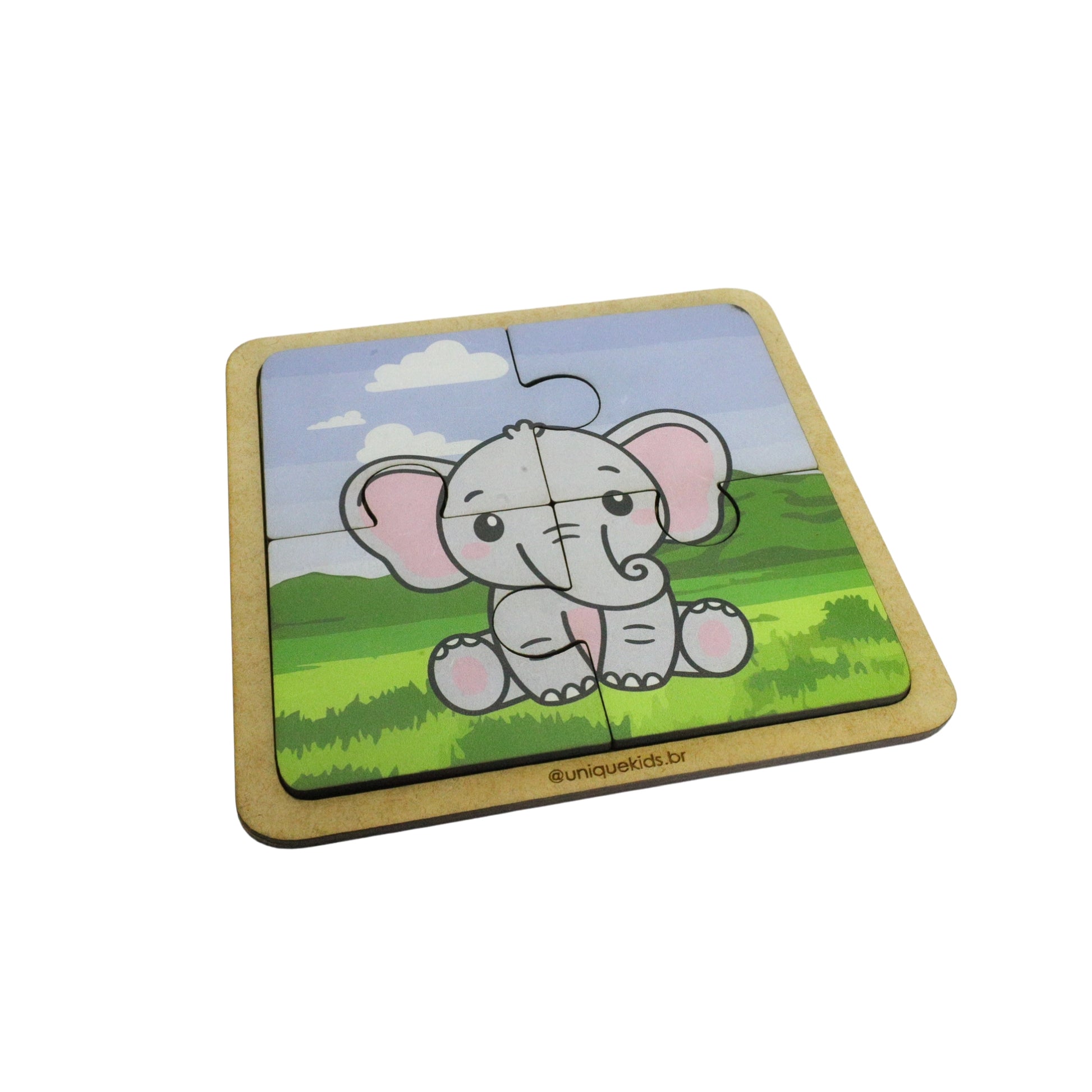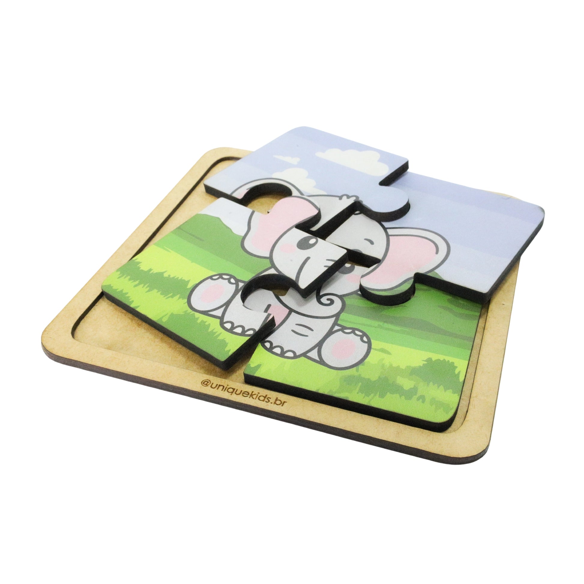 Acompanha: Quebra-cabeça 4 peças (elefante)