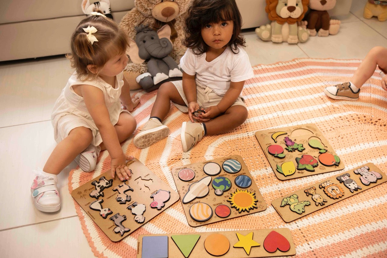 Idade Indicada: A partir dos 3 anos Acompanha: 24 peças (12 pares) Material: MDF, tinta UV (não tóxica) e petg Dimensões: 4 x 4 cm Peso: Total - 17...