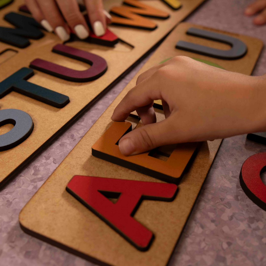 Acompanha: Base +  5 letras vogais (A - E - I - O -U) - NÃO ACOMPANHA SUPORTE