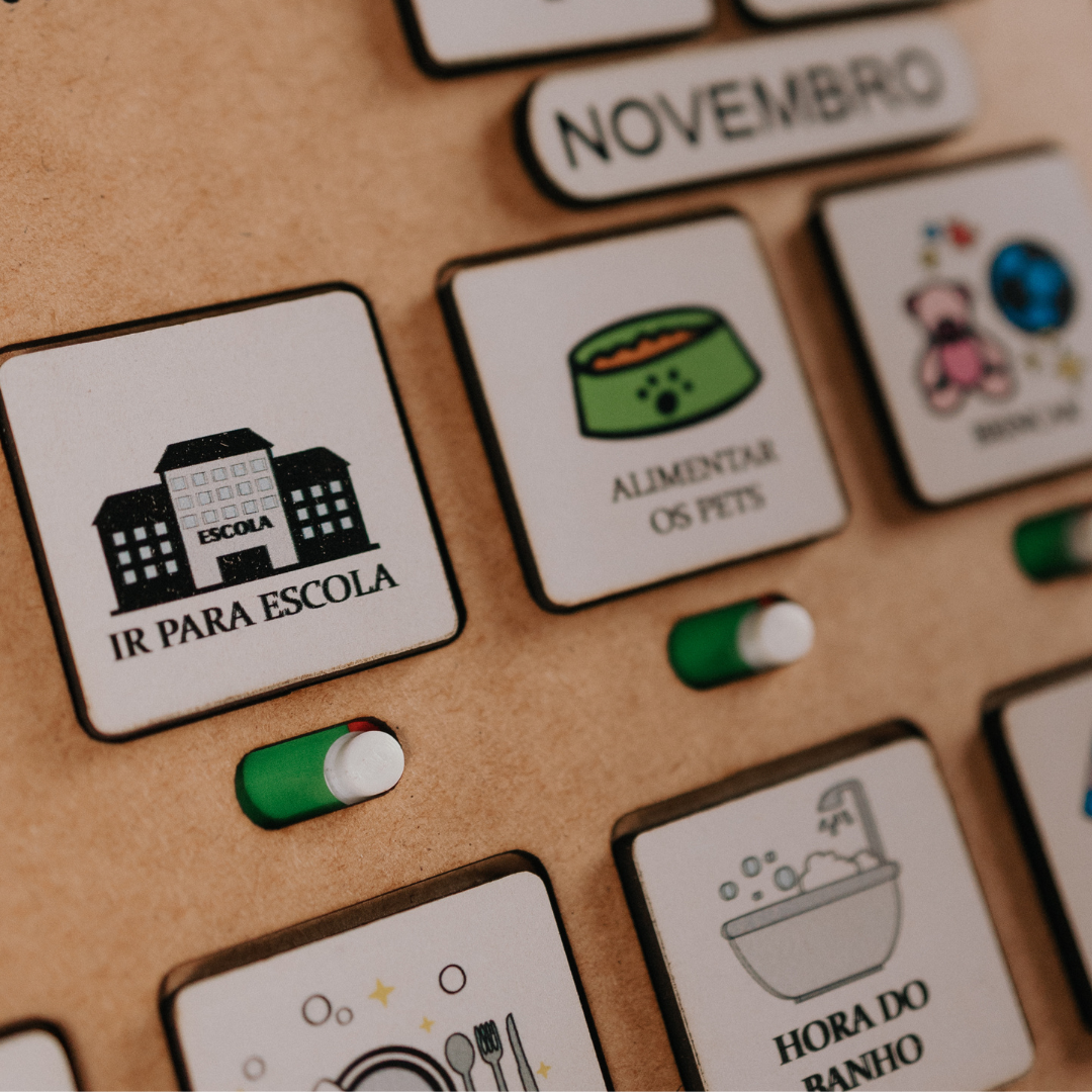 O quadro Tarefas Diárias é indicado para crianças a partir dos 3 anos, sem limite máximo de idade — cresce com seu pequeno, promovendo autonomia desde os primeiros passos até fases mais independentes.